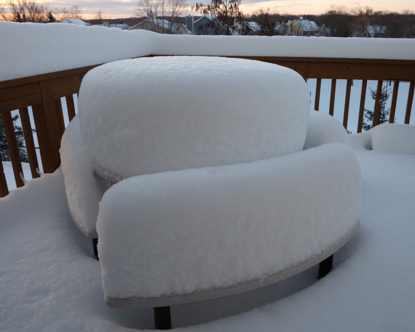 19.3 inches of snow as seen on our deck on the morning of February 2, 2015