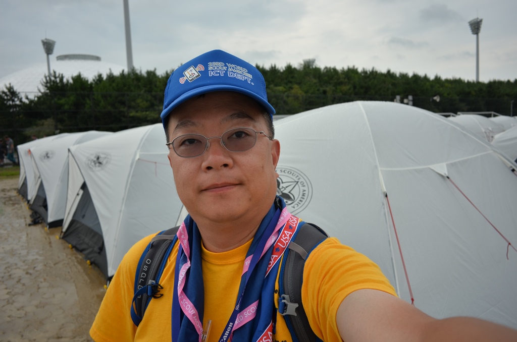 - World Scout Jamboree dome tent with fiberglass poles that is large enough to fit two cots and to allow its tenants to stand up