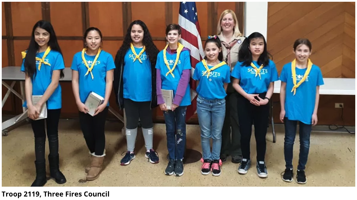 Today Troop 2119 of Bartlett met for the first time as an official girl troop of Scouts BSA. The troop was established on February 1, 2019 when the Boys Scouts of America formally accepted girls into its Scouts BSA program.